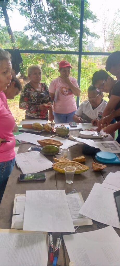 Asimismo se conversó sobre la diversidad genética y se trabajó con el Manual de Caracterización del Cacao como instrumento técnico para la identificación y selección de árboles élite en las unidades de producción.