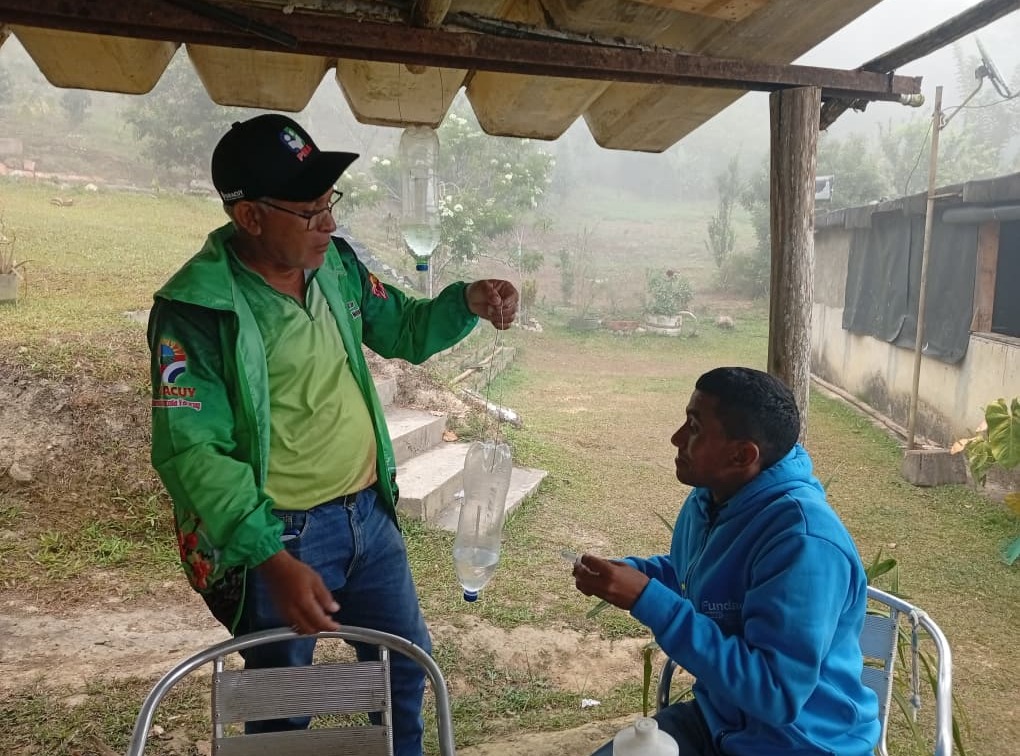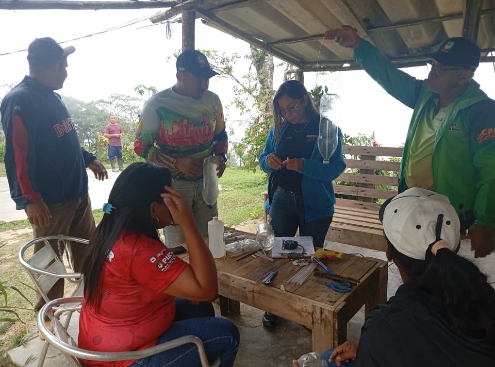 Durante la actividad, se desplegó un sistema de monitoreo que culminó con la instalación estratégica de 11 trampas artesanales de alcohol (mezcla de metanol y etanol), diseñadas para el control efectivo de la broca (Hypothenemus hampei) sin el uso de químicos contaminantes.