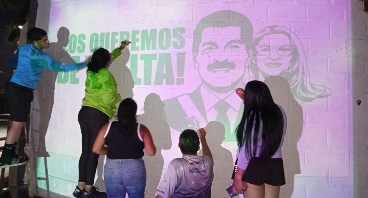 (Caracas, 1 de febrero de 2026).- El equipo de la Fundación Infocentro en el estado Carabobo, acompañó a los habitantes de la comunidad del Sector Azul, en el municipio Naguanagua, en jornada muralista como muestra de organización y compromiso revolucionario. Esta actividad, impulsada por la Unidad de Batalla Bolívar-Chávez (UBCH) Abdón Calderón y voceros de la Sala de Autogobierno, consistió en el rayado y pintura de murales con mensajes de respaldo al presidente, Nicolás Maduro y a la Primera Combatiente, Cilia Flores. El despliegue comenzó con el trazado artístico de dos murales emblemáticos y continuó con las labores de pintura y acabado final, llenando de color y consignas las paredes de la comunidad. Esta acción se realizó como símbolo de resistencia y lealtad. La iniciativa se lleva como parte de la agenda de movilización permanente de las bases populares, que a través del arte urbano envían un mensaje de solidaridad y firmeza al Ejecutivo Nacional. Mincyt/Prensa/Con Información Fundación Carabobo