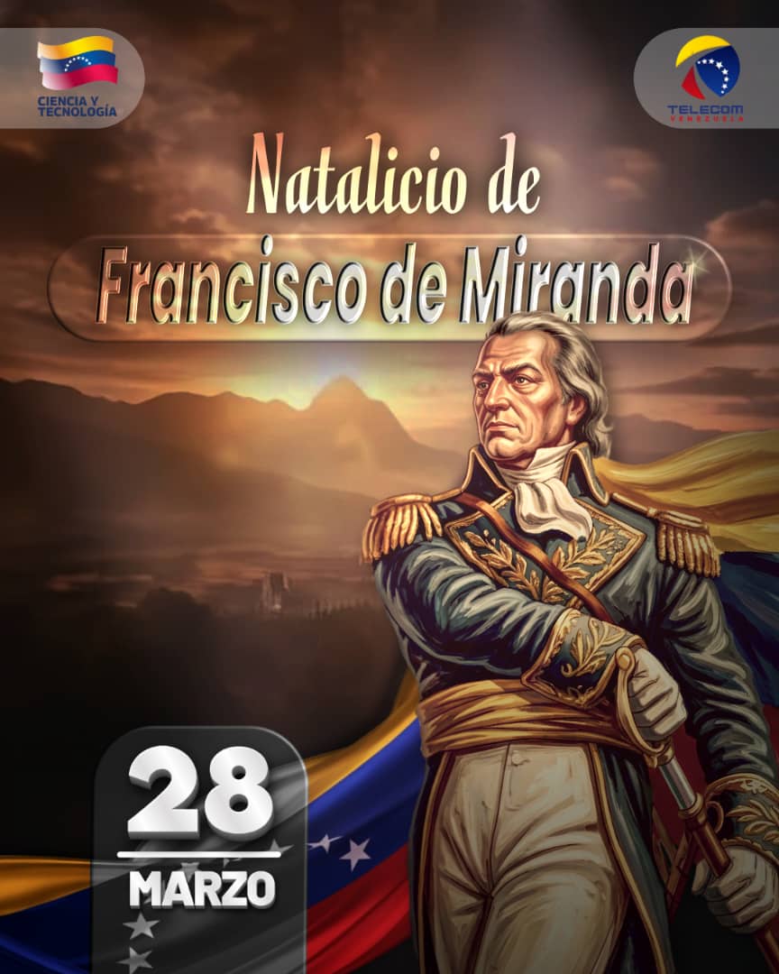 Un día como hoy, en 1750, nació en el centro de Caracas el “Precursor de la Independencia Americana”: Sebastián Francisco de Miranda y Rodríguez de Espinoza, hijo de Sebastián de Miranda Ravelo, comerciante canario dueño de panaderías; y de Francisca Antonia Rodríguez de Espinoza, caraqueña de ascendencia criolla distinguida. Su nacimiento ocurrió durante el reinado de Fernando VI, en medio de un gran auge del comercio de cacao y al mismo tiempo una gran opresión por el monopolio español. El mismo marcó el inicio de una vida extraordinaria que más adelante sería de gran influencia y forjaría alianzas en las revoluciones de tres continentes: Europa, África y América. Desde su infancia recibió una educación que lo destacaría: Latín, Gramática de Nebrija, catecismo y rudimentos de aritmética, bajo maestros y colegios destacados. Luego, en la Universidad de Caracas (hoy UCV), estudió Lógica, Física y Metafísica. Esa formación. Influida por la Ilustración, forjó su rechazo al absolutismo colonial y su sueño de una América libre. En 1771 se une al Ejército Español iniciando su periplo revolucionario. Participó en la defensa de Melilla (España), General en la Guerra de Independencia de EE.UU. y fue Mariscal de Campo en la Revolución Francesa. Concibió el proyecto de la “Gran Colombia” para independizar y unir a las colonias americanas, diseñando la bandera tricolor. Gestionó apoyo para la independencia de nuestro país en cortes europeas (Inglaterra, Rusia y EE.UU.). De allí es considerado el primer internacionalista de Venezuela. También fue escritor y creó un extenso archivo personal donde documentó sus viajes e ideas, considerado un legado histórico invaluable: Colombeia. Su influencia sobre Simón Bolívar fue profunda y directa. Bolívar, lo admiró como mentor a pesar de ciertas diferencias estratégicas. Adoptó sus símbolos como la bandera tricolor amarillo-azul-rojo y su visión de unidad americana bajo el nombre de «Colombia». Miranda legó a Bolívar ideas forjadas en la Revolución Estadounidense y Francesa. Bolívar lo visitó en 1805 en Londres, absorbiendo su experiencia como «el americano más universal». Esta conexión mentor-alumno catalizó la independencia venezolana. En Telecom Venezuela, hoy conmemoramos su natalicio como Día del Generalísimo, recordando cómo un nacimiento en 1750 encendió la emancipación latinoamericana y honrando su legado que perdura como faro de libertad continental.