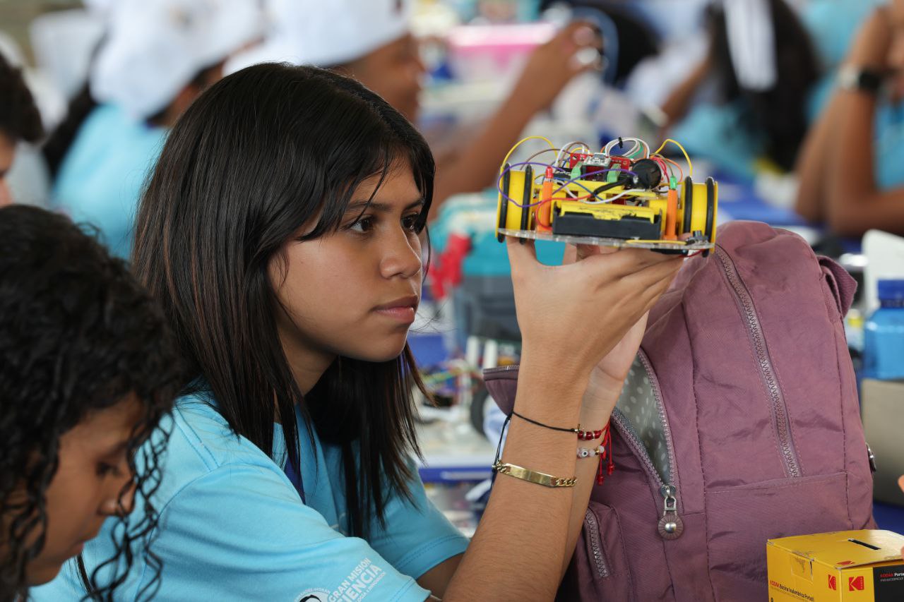 (Caracas, 12 de agosto de 2025).– La primera jornada de la fase nacional de la Olimpiada de Robótica Creativa 2025, celebrada en Caracas, culminó de manera exitosa y deslumbrante, manifestó la ministra para Ciencia y Tecnología, Gabriela Jiménez Ramírez. «Nuestros semilleros científicos demuestran un gran nivel de creatividad con proyectos de innovación que superan las expectativas, enfocados en los motores productivos de la Agenda Económica Bolivariana», expresó la ministra a través de su canal en Telegram. La también vicepresidenta sectorial de Ciencia, Tecnología, Ecosocialismo y Salud narró que en la actividad, realizada en el Complejo Militar Fuerte Tiuna, disfrutaron de la capacidad que tienen los niños, niñas y jóvenes de trabajar en equipo y desarrollar la programación de los robots. «Mañana continuaremos celebrando el conocimiento y el gran valor de nuestra juventud. Las Olimpiadas de Robótica Creativa 2025 son ciencia para la vida, para la paz y el desarrollo nacional», sostuvo la vicepresidenta sectorial. Asimismo, destacó que la agenda de robótica que se promueve desde el Gobierno Bolivariano «es una oportunidad para el crecimiento de nuestro país». Este 12 y 13 de agosto cerca de 200 participantes se concentraron en Caracas para culminar la última etapa de un ciclo de competencias regionales (en Anzoátegui, Carabobo y Zulia). Mincyt/Prensa/YI/Fotografía: AAF