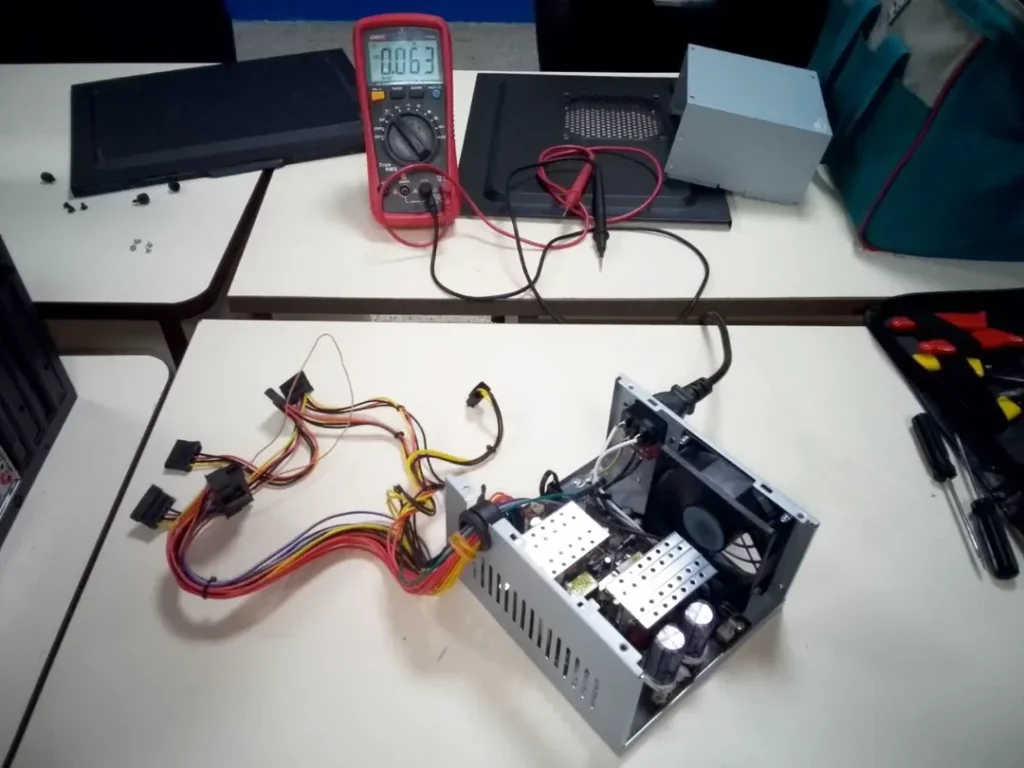 Durante el proceso, se detectó y corrigió la corrosión en componentes internos mediante el reemplazo de fuentes de poder, permitiendo que el equipo tecnológico quedara nuevamente al servicio de la población estudiantil.