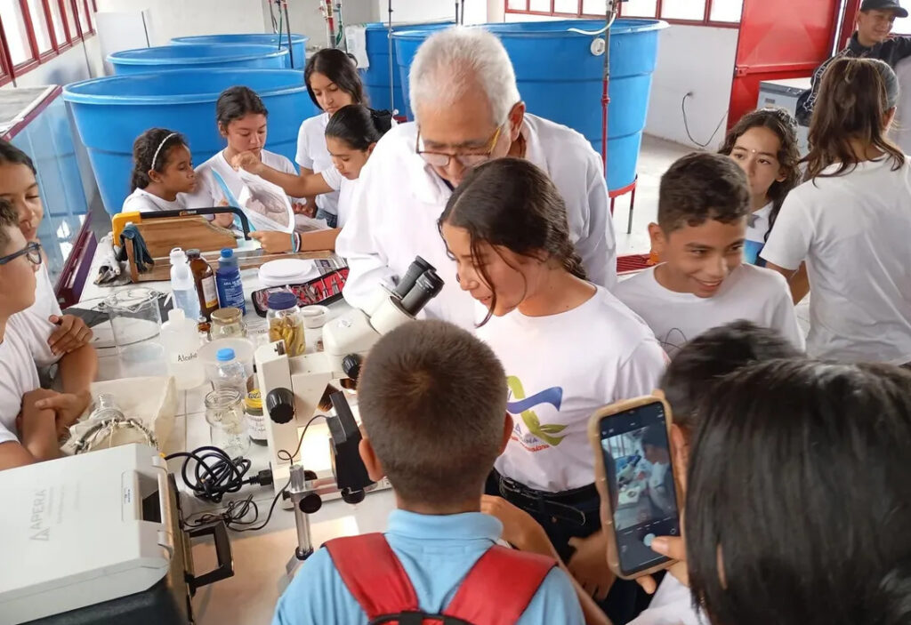 Durante el encuentro, los estudiantes profundizaron en los procesos de reproducción inducida de especies migratorias, como el coporo y la cachama. Asimismo, aprendieron sobre la importancia nutricional del plancton para el desarrollo de las larvas y los métodos de manejo de depredadores naturales, como las ninfas de libélula.