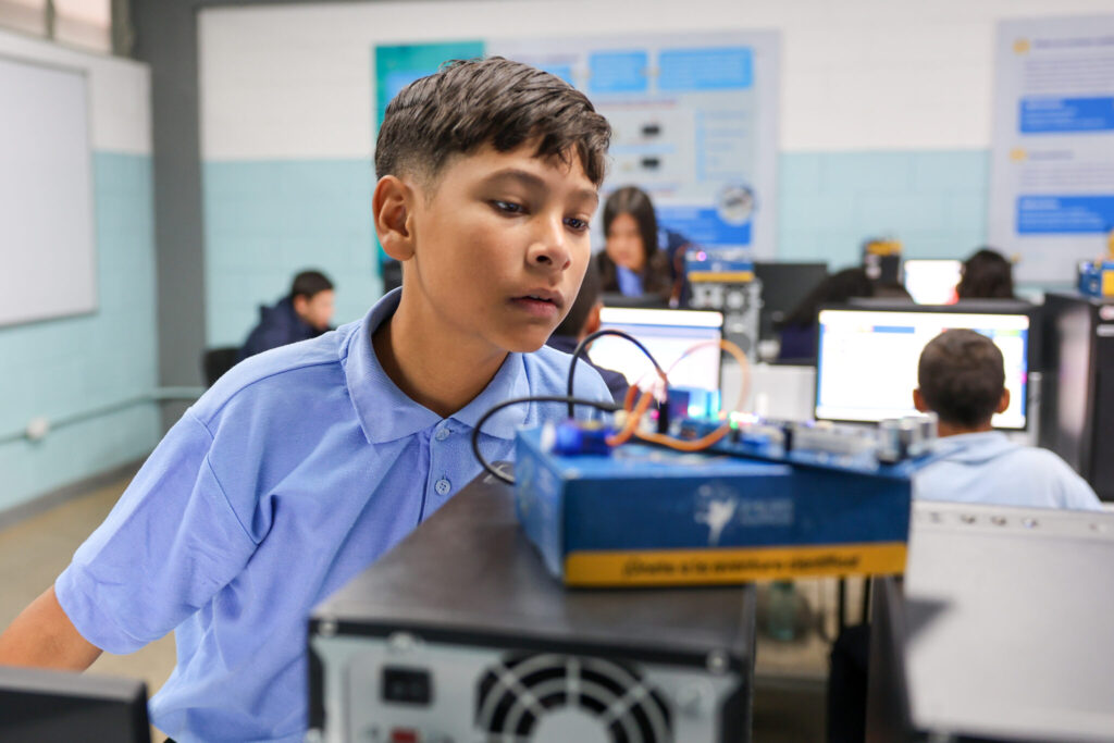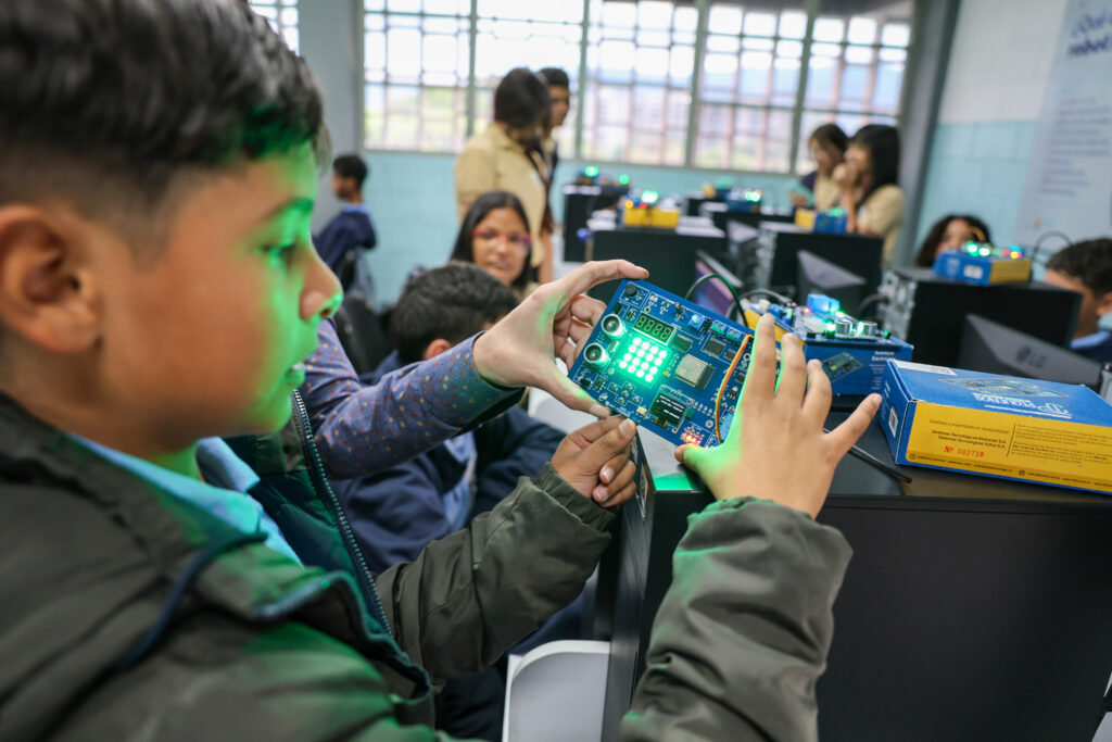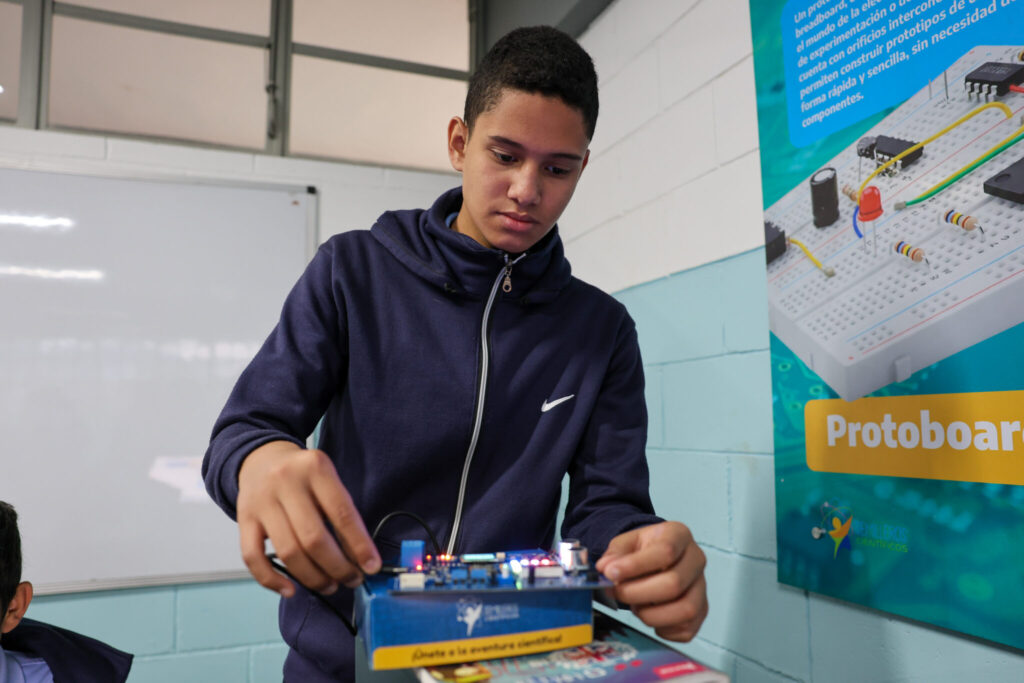 «Se han entregado más de 2.500 kits a la fecha y lo que queremos con ustedes es que aprendan desde la electrónica y la programación a diseñar múltiples dispositivos de control autónomo (…) Cada una de las tarjetas tiene más de 30 sensores, sensores de proximidad, de acercamiento, de temperatura, de humedad, potenciómetros y cada uno de estos elementos configurados y programados les va a permitir diseñar diferentes dispositivos que tienen que ver con el aparato productivo nacional», explicó.