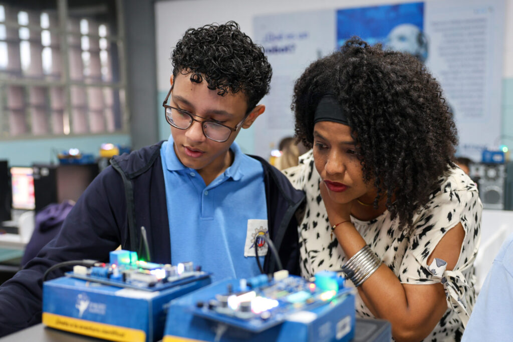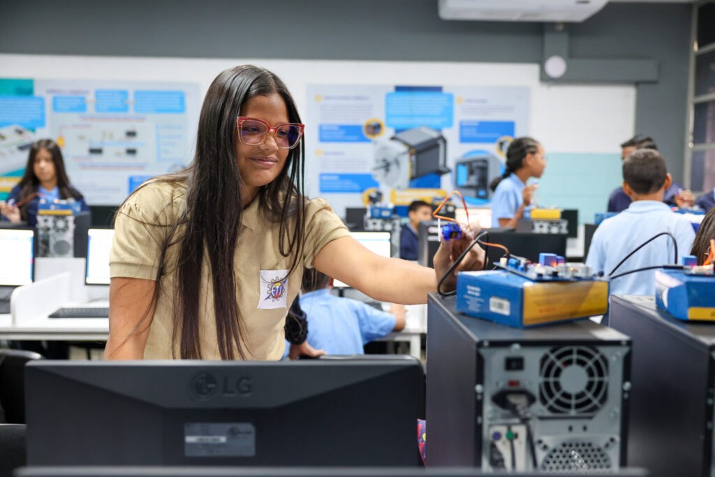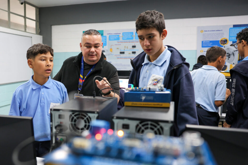 Albenis Medina, docente del área de electrónica en la escuela, enfatizó la importancia de la formación técnica en las áreas de electrónica, robótica, mecánica, electricidad e informática.