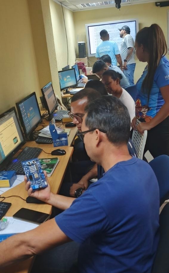 Durante tres días de formación, los docentes conocieron el Kit Educativo de Electrónica Pequeños Ingenieros, creado con tecnología nacional, gracias a la colaboración de la empresa Alcaraván Vultur y el Centro Nacional de Tecnologías de Información (CNTI).