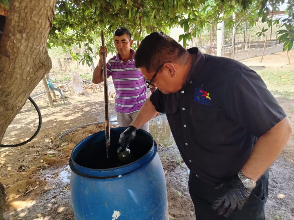 Los ingenieros agrónomos de la Coordinación de Agroalimentación y Ambiente de la Fundación Inzit supervisaron y aplicaron Trichoderma, un controlador biológico entregado en visitas anteriores, con el fin de proteger la salud de las plantaciones.