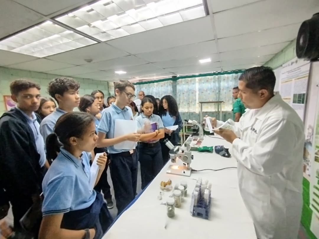 La jornada culminó con una demostración práctica que captó la atención de los estudiantes, quienes pudieron observar de cerca plantas in vitro (caña de azúcar, papa, piña, musáceas y cítricos) y conocer el Kit de diagnóstico de Huanglongbing (HLB) o dragón amarillo, una herramienta crucial para la detección de esta enfermedad en los cítricos venezolanos.