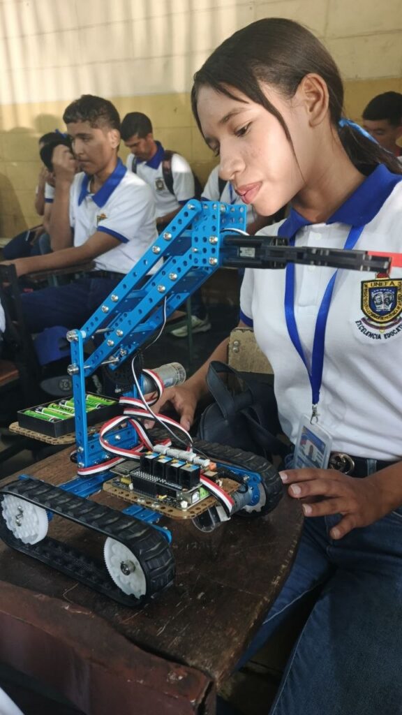 El epicentro del aprendizaje fue un micro taller de robótica de alto nivel, facilitado por el Programa Nacional Semilleros Científicos, donde los participantes dominaron conceptos de programación aplicada y electrónica mediante el uso del Kit Ultimate 2.0, tecnología de punta distribuida por el Gobierno Bolivariano a través del Ministerio del Poder Popular para Ciencia y Tecnología (Mincyt).